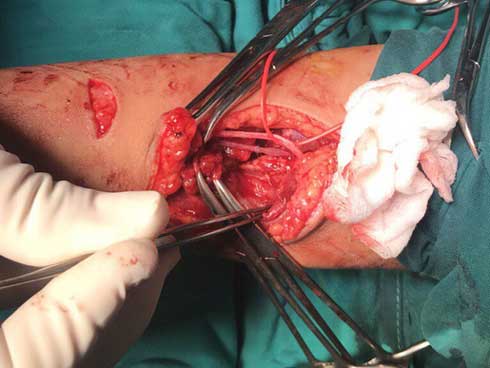 Ngay sau khi tiếp nhận bệnh nhi, các bác sĩ xác định sinh mạng của bé đang nguy kịch nên chỉ định phẫu thuật khẩn cấp. Sau 1 tiếng khẩn trương, ê-kíp đã tiến hành mổ kết hợp xương, vi phẫu nối lại động mạch cánh tay trái. Rời phòng mổ, bệnh nhi được đưa về khoa Hồi sức để theo dõi và điều trị bảo tồn các chấn thương sọ não, tổn thương gan.