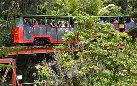 Hai bố con bé trai là một trong những hành khách đã mua vé tham quan bằng xe lửa tốc độ chậm trong 1 giờ đồng hồ. Công ty xe lửa du lịch Driving Creek quảng cáo trên trang web của họ rằng, đây là tuyến xe lửa nổi tiếng nhất ở New Zealand.