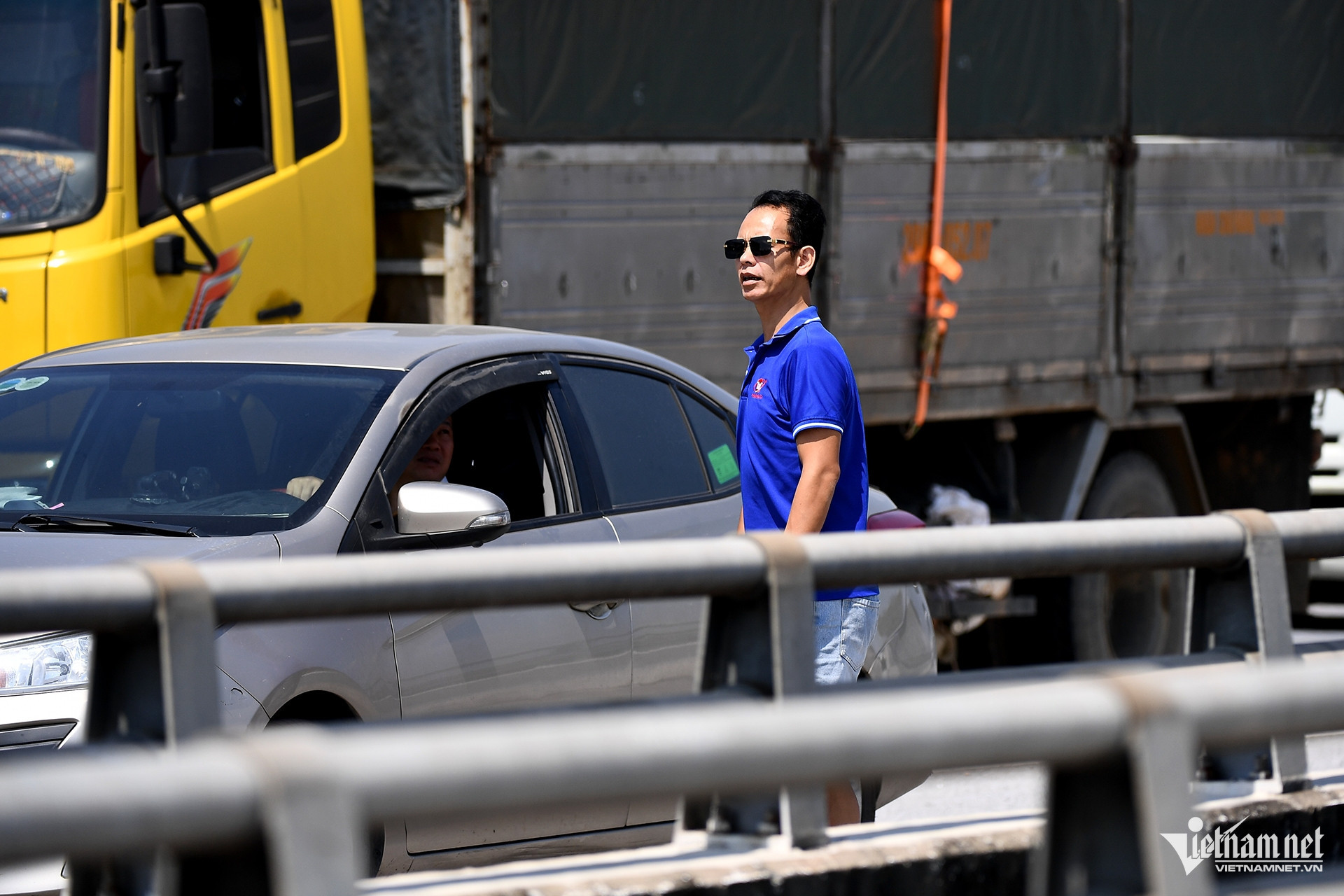 Nhiều người sốt ruột rời xe, đứng trên đường ngóng về phía trước.