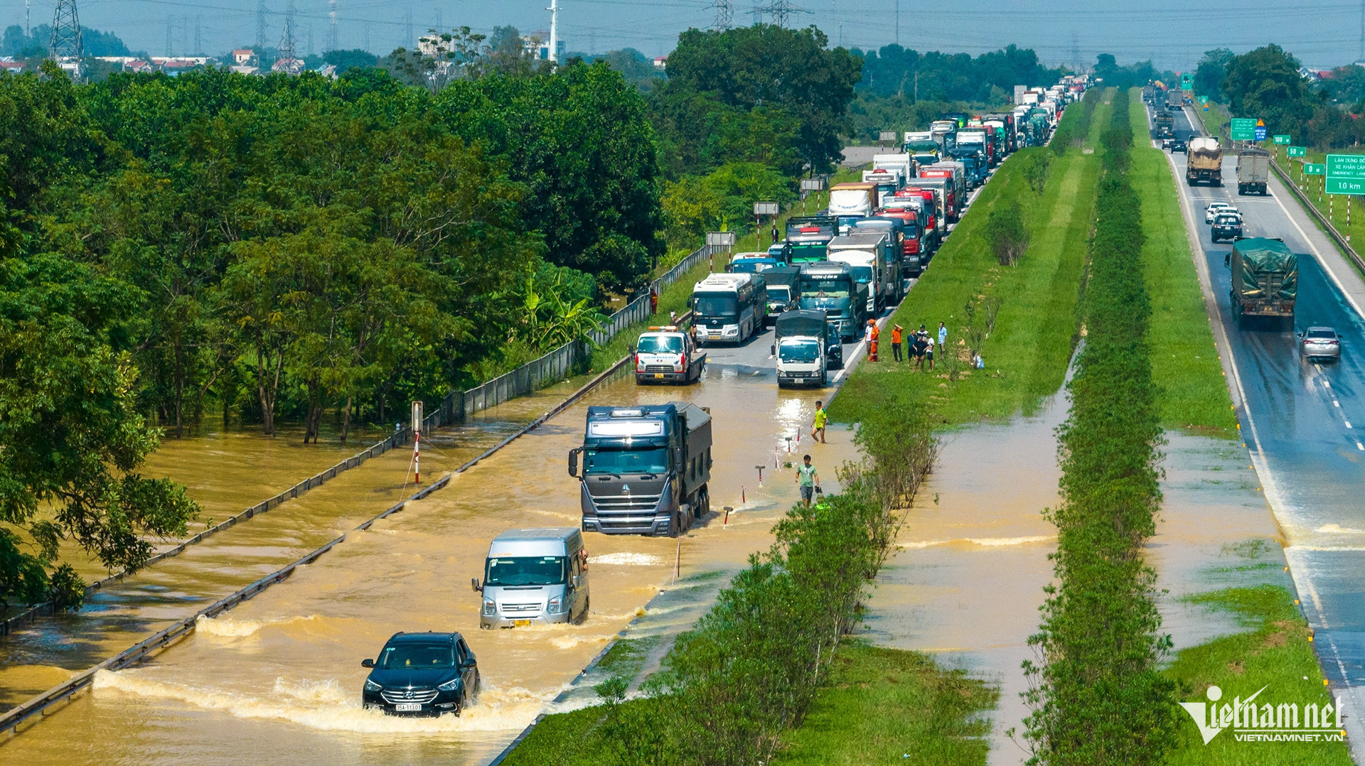 Anh Xuân, một tài xế, cho biết đã bị kẹt ở Thái Nguyên 4 ngày nay do mưa lũ. "Lên được đến cao tốc vẫn gặp cảnh ngập nước, tôi chưa biết lúc nào mới về được đến Hà Nội", anh nói.