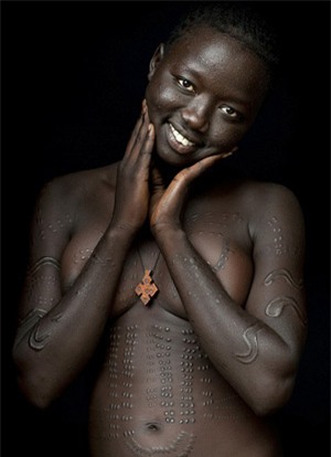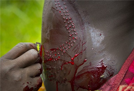 Người chứng kiến đã kể lại, cô gái 12 tuổi không nói một câu nào trong khoảng thời gian rạch da 10 phút này. Mẹ cô bé lấy một cái gai để kéo da và dùng dao lam để cắt. Có lẽ đã quá quen với phong tục này mà cô gái không có một biểu hiện đau đớn nào trên khuôn mặt. Có thể, cô phải chịu đựng bởi một tiếng rên la được coi là điều đáng xấu hổ của gia đình và vết sẹo là biểu hiện vẻ đẹp của bộ lạc.