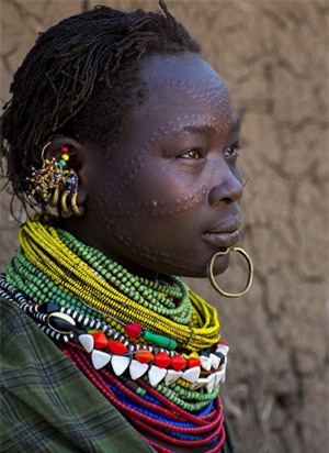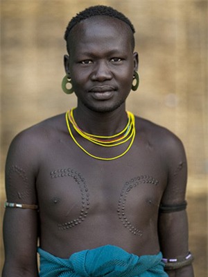 Nhưng bộ tộc Ethiopia không phải là những người duy nhất làm hình xăm từ gai cây. Tại Uganda, người Karamojong cũng nổi tiếng với vết sẹo phức tạp của họ, và bên kia biên giới Ethiopia với Sudan, người Nuer chịu những vết sẹo trên trán.