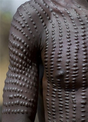 Cách xăm mình gây sốc này là của bộ lạc Bodi, Mursi và Surma tại Ethiopia. Theo họ, đây là một nền văn hóa lâu đời và tất cả mọi thứ là biểu hiện cho vẻ đẹp tuổi trưởng thành. Chỉ có điều, hình xăm được tạo ra từ vết thương và thịt lồi ra sau đó.