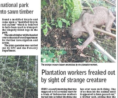 Một nhóm công nhân Indonesia đã rùng mình khi phát hiện một con "thú lạ" tại đồn điền cọ dầu ở bang Sarawak - Malaysia vào cuối tuần rồi.