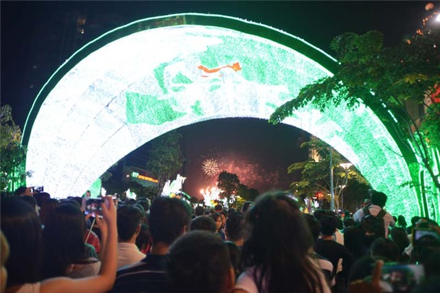 Tương tự, tuyến đường Hàm Nghi lượng người đổ về đông đúc khiến giao thông "đóng băng" hoàn toàn. Tương tự, tuyến đường Tôn Đức Thắng cũng ken kín người. Càng về khuya lượng người kéo về càng đông.