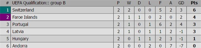 diệt Andorra với tỷ số 6-0, Bồ Đào Nha đã có 3 điểm đầu tiên tại vòng