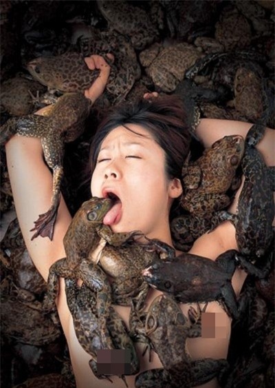 Trong một bức hình khiêu dâm cóc, Daikichi và các đồng nghiệp đã phải sử dụng tới 300 con cóc sống xếp lên cơ thể người mẫu, thậm chí cả... những chỗ tế nhị để sáng tạo ra những bức hình khiêu dâm nghệ thuật nhưng cũng không kém phần "rùng mình".