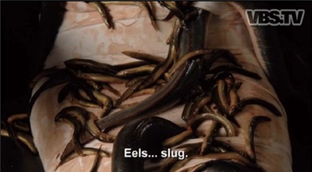 Kinh khủng hơn cả là chủ đề khiêu dâm lươn. Anh cho biết đã dùng tới 20, 30 con lươn nhỏ để thực hiện những bức ảnh đầy chất ma mị này. Daikichi còn phải dùng tay nhét từng con lươn nhỏ vào vùng kín của cô người mẫu. Sau đó để lươn tự chui ra và bắt đầu chụp.