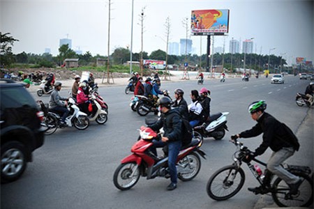 Nhật Tân về trung tâm Hà Nội. Thậm chí cả ô tô cũng lao ngược chiều. |