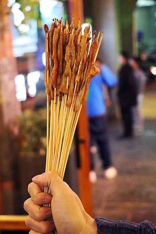 Dạo gần đây giới trẻ Trung Quốc phát sốt với món ăn đường phố này. Đó chính là món ruột vịt nướng, mỗi lần ăn phải ăn vài chục xiên thì mới đã cơn thèm.