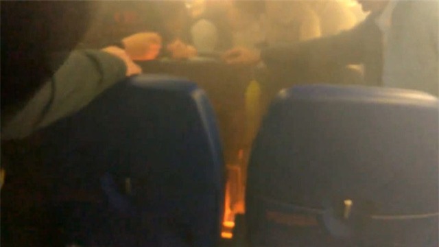 Video cho thấy các hành khách đứng vây quanh ghế ngồi nơi ngọn lửa đang bốc lên và bình tĩnh tìm cách dập tắt ngọn lửa. Một số hành khách khác tỏ ra hoảng sợ với sự việc và nhanh chóng được sơ tán bằng thang trượt từ cửa thoát hiểm. Sau đó, thành viên phi hành đoàn đã nhanh chóng tìm bình cứu hỏa và nước tới dập lửa.