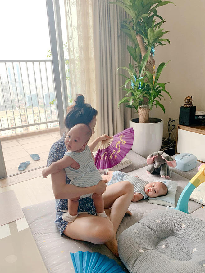 Suốt 5 tháng qua, vợ hai sinh năm 1991 của Thành Trung thường xuyên khoe ảnh ở nhà chăm sóc các con.
