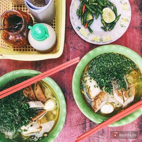Bánh canh hẹ chả cá. |