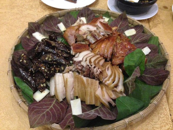 Nếu muốn thử đổi vị với những món của núi rừng Tây Bắc thì hãy nhớ lưu ngay cái tên heo mẹt để lôi kéo đám bạn đi cùng. Một mẹt heo ngồn ngộn với tận 7 món, nào là heo nướng, heo xào lăn, dồi trường chiên, bắp thịt luộc, lòng heo, canh huyết, măng sườn... Món sẽ ăn cùng xôi và một hương vị độc đáo chính là nhựa mận.