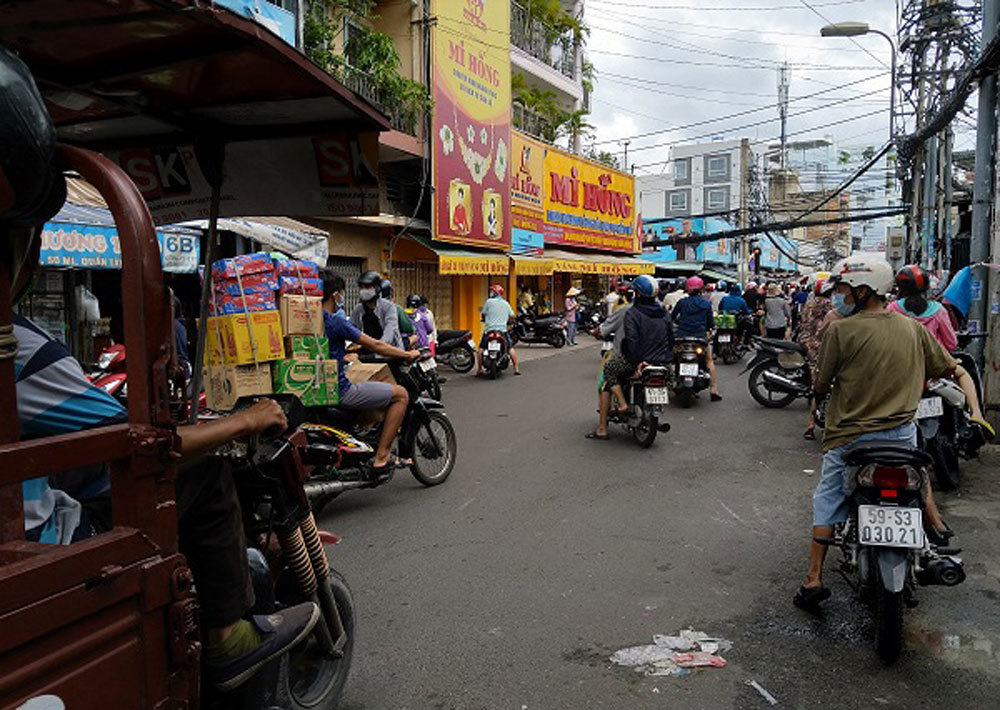 12 tiếng trước thời điểm áp dụng giãn cách xã hội. Giữa trưa, các gian hàng xung quanh chợ Bà Chiểu (quận Bình Thạnh), lượng người đến mua các mặt hàng là khá đông, khác hẳn so với ngày thường.