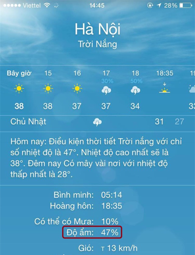 Có thể thấy rõ độ ẩm của Hà Nội vào thời điểm ảnh chụp chỉ đạt 47%. Con số này có thể thay đổi liên tục, nhưng về cơ bản sẽ chỉ dao động quanh khoảng này.