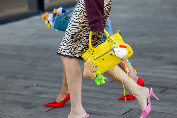 Túi xách da lộn tự nó đã trông đắt tiền và sang trọng, có thể nâng tầm bất kì trang phục nào. Khi kết hợp cùng charm bag, vẻ ngoài của bạn sẽ trẻ trung và năng động hơn. Hoặc bạn muốn trông trưởng thành hơn thì có thể bổ sung thêm chiếc khăn lụa quấn quanh quai túi, hoặc thắt nơ thành điểm nhấn duyên dáng.