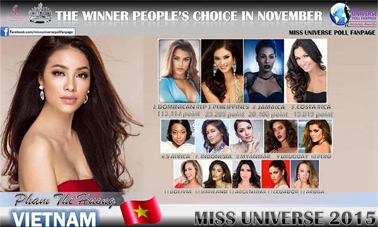 Đại diện sắc đẹp Việt Nam là người đẫn đầu bình chọn vào tháng 11 vừa qua.