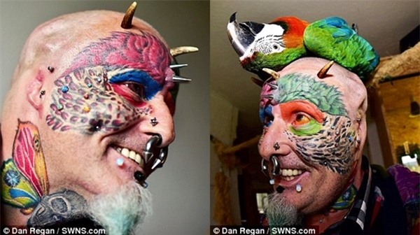 Ted Richards -56 tuổi, sống tại Hartcliffe, Bristol (Anh) đã chấp nhận cắt đôi tai và chuẩn bị đi phẫu thuật mũi.Ngoài ra, ông có 110 hình xăm, đeo 50 chiếc khuyên, chấp nhận xẻ lưỡiđể trông giống một con vẹt nhất có thể.