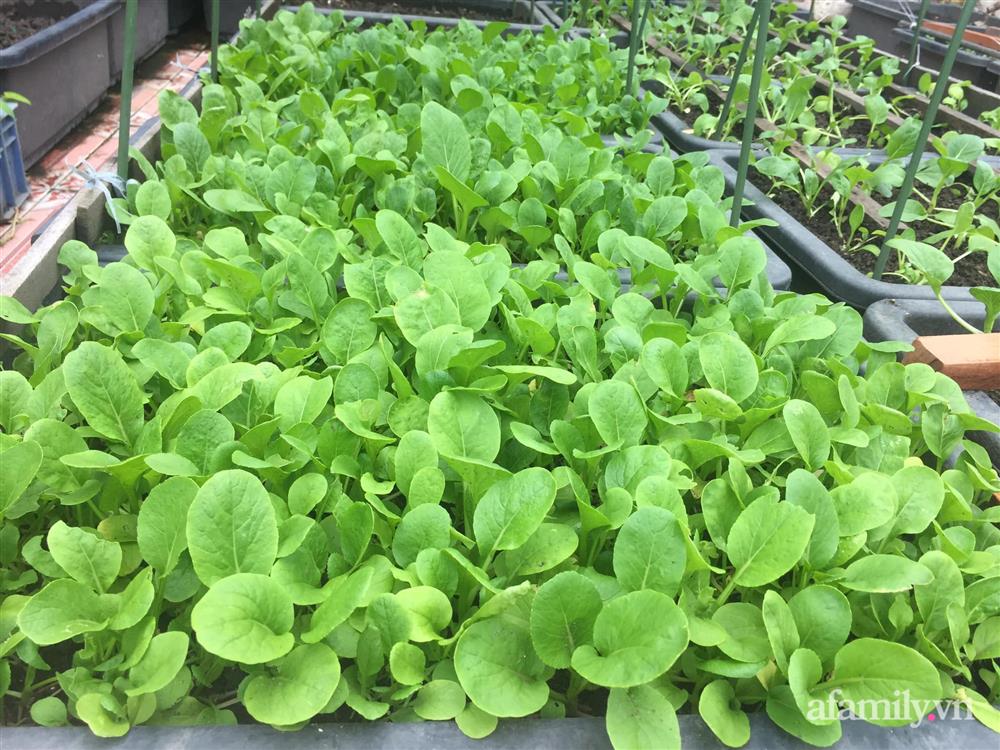 Những góc nhỏ được chị gieo hạt trồng cây ăn lá. Sau khi gieo, chị thường tách các cây lớn để trồng thu hoạch nhiều lần.