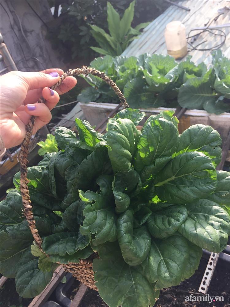 Dù khoảng diện tích sân thượng có phần hạn chế nhưng không gian xanh ấy giúp chị Hạnh an tâm hơn khi không phải mua rau củ ngoài chợ.