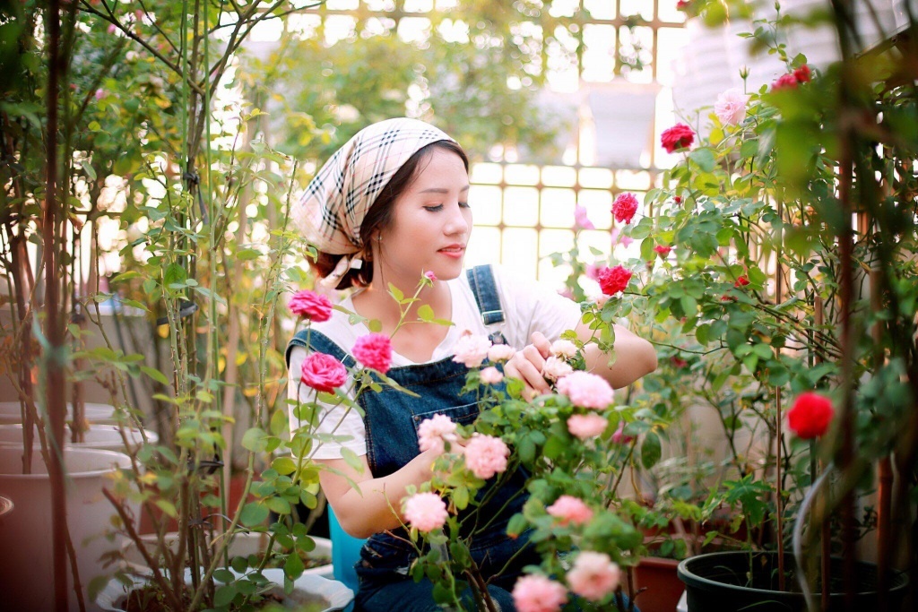 Nếu một lần được ghé thăm nhà chị Ngoan, mọi người sẽ không khỏi bất ngờ khi khoảng sân thượng khá nhỏ được người phụ nữ đảm đang này sắp xếp hợp lý để trồng được hơn 100 gốc hồng. Chăm hồng không quản ngày đêm, không quản mệt nhọc, có khi bị gai đâm chảy máu, tay đầy sẹo do gai của hoa nhưng niềm hạnh phúc chẳng thể đánh đổi được của chị chính là ngắm nhìn vườn hồng trên cao của mình nở rực rỡ, tỏa hương thơm dịu dàng.