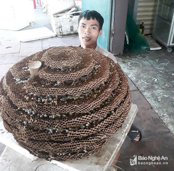 Khi đưa tổ ong khủng về nhà, nhiều người hiếu kỳ đã đổ xô đến xem. Tổ ong có 10 tầng, tầng giữa là lớn nhất với đường kính hơn 0,9 m và nhỏ dần về 2 đầu, các tầng đang còn nguyên nhộng. Tổ ong có trọng lượng hơn 20 kg, cao gần 0,7m. “Đây là tổ ong lớn nhất từ trước đến nay mà tôi săn được” – anh Quản chia sẻ.