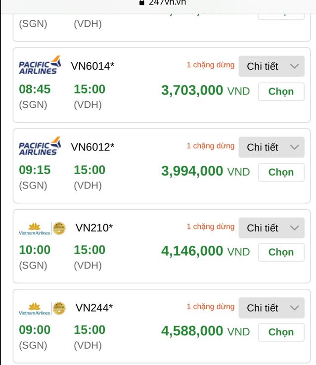 Mức giá của chặng bay TP.HCM về Đồng Hới ngày 16/12/2022