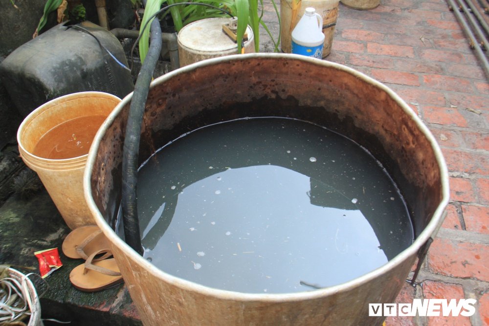 Nước bẩn đen kịt được bơm lên từ kênh mương nhằm phục vụ cho quá trình chế biến miến.