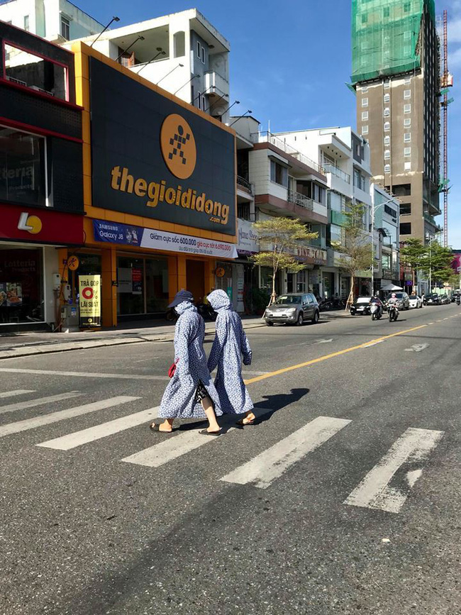 Hai nàng đang thơ thẩn sang đường với phong thái rất điềm tĩnh, thong dong và tự tin hoàn toàn trước sự bảo vệ của "tổ nghiệp ninja" khi ban cho mình bộ đồ rất đẹp mắt, rất kiên cố mà chẳng sợ nắng trời chui vào được.