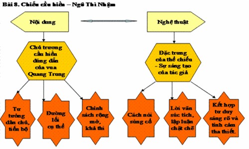 Cách thứ ba, giáo viên đưa ra mô hình sơ đồ và toàn bộ nội dung cần tổng kết, sau đó yêu cầu học sinh xếp các nội dung đó vào các ô tương ứng.