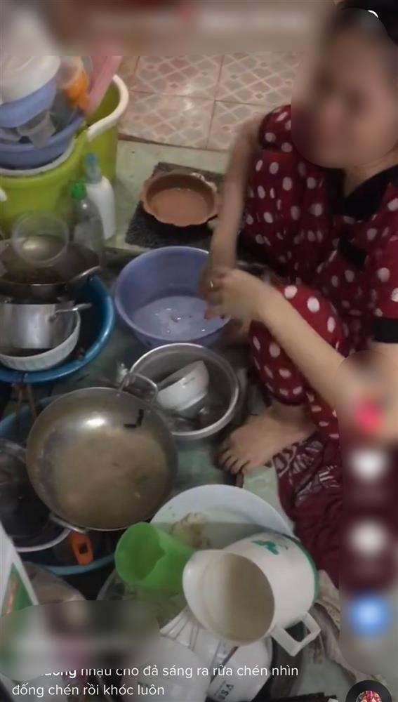 Chẳng thế mà mới đây, đoạn clip ghi lại cảnh một chị vợ bật khóc trước đống bát đĩa ngổn ngang gây chú ý.