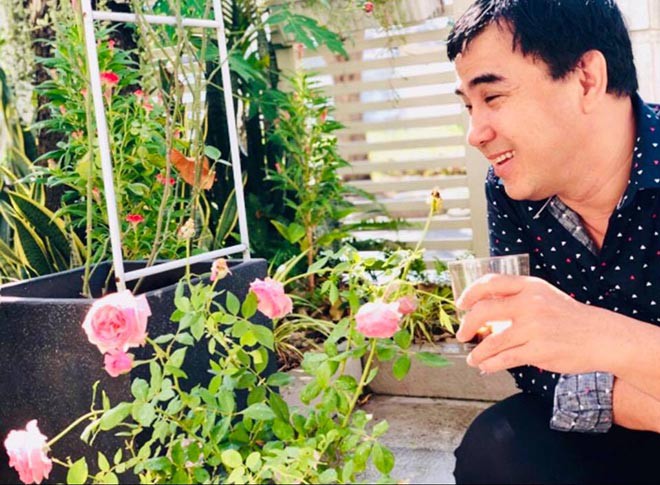 Quyền Linh thường xuyên tự tay chăm sóc cho khu vườn tại gia đình.