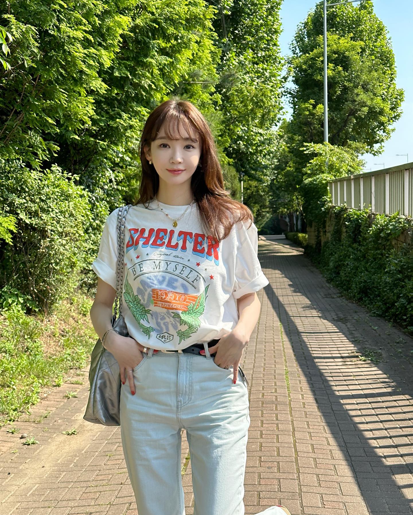 Món thời trang này được các mỹ nhân Hàn vô cùng ưa chuộng, cứ hè đến là diện. Sao Hàn biến hóa với áo thun trơn màu nhã nhặn, hoặc nổi bật hơn là áo thun họa tiết, áo thun màu pastel. Không khó để mặc đẹp với áo thun, chị em có thể kết hợp mẫu áo này với quần jeans giúp nhân đôi hiệu quả "hack" tuổi. Ngoài ra, công thức áo thun + quần âu cũng rất đáng tham khảo, vì vừa trẻ trung vừa thanh lịch.