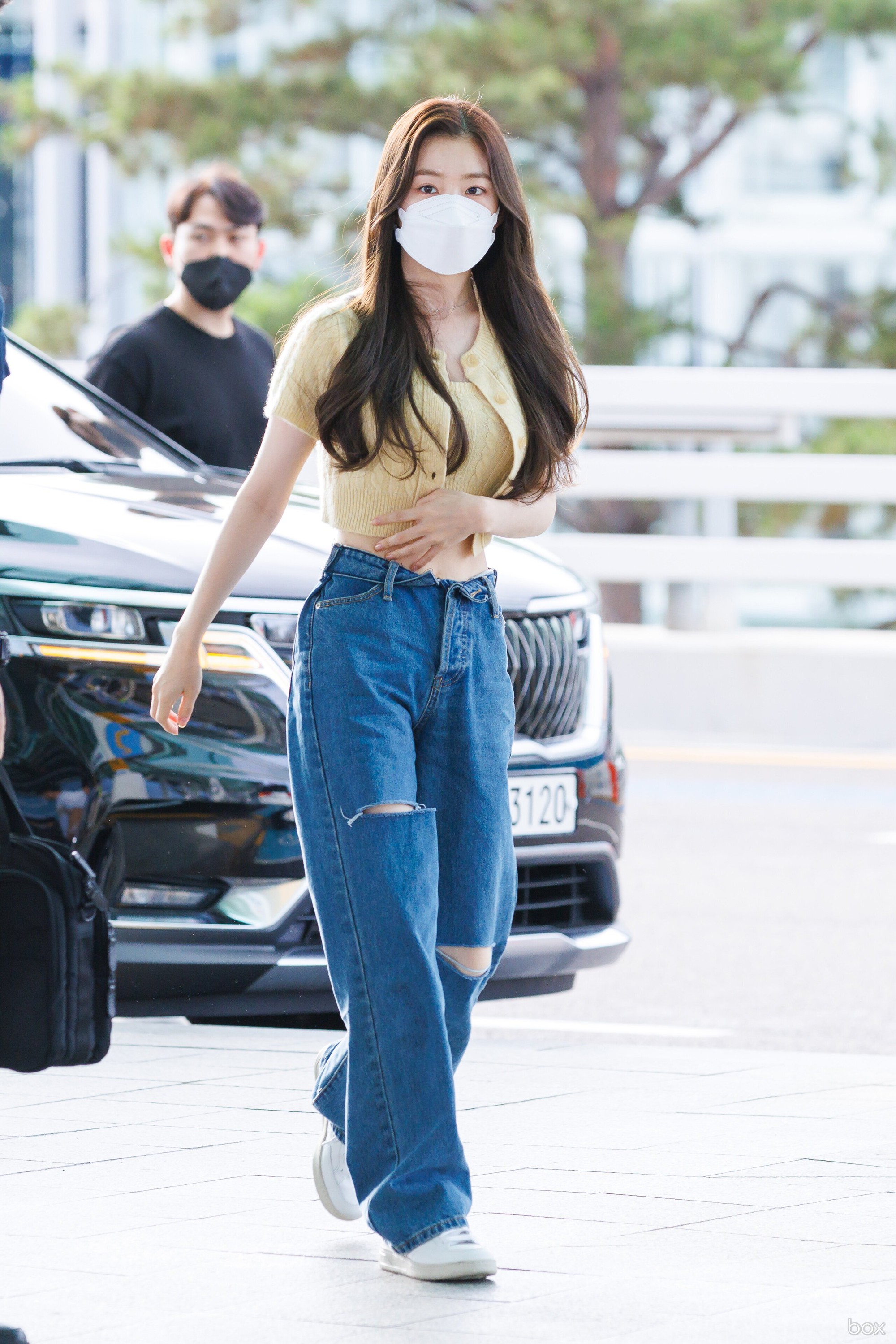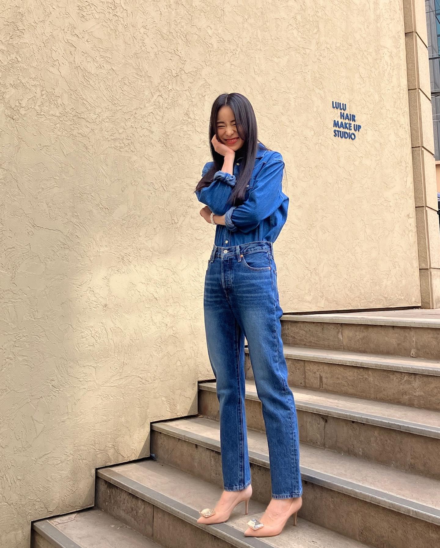 Sẽ là một thiếu sót nếu không nhắc đến quần jeans - bảo bối "hack" tuổi của chị em nói chung và sao Hàn nói riêng. Quần jeans có nét bụi bặm, trẻ trung. Kiểu quần này giúp cả tổng thể outfit trở nên nổi bật. Nhờ sự khéo léo khi mix đồ, sao Hàn đã tạo được các set trang phục sang xịn mịn khi diện quần jeans. Bí kíp rất đơn giản, họ thường kết hợp quần jeans với áo sơ mi, áo thun basic và không quên sơ vin gọn gàng. Các mẫu giày phù hợp để mix với quần jeans bao gồm giày búp bê đơn giản, loafer, giày sneaker trắng hay sandal.