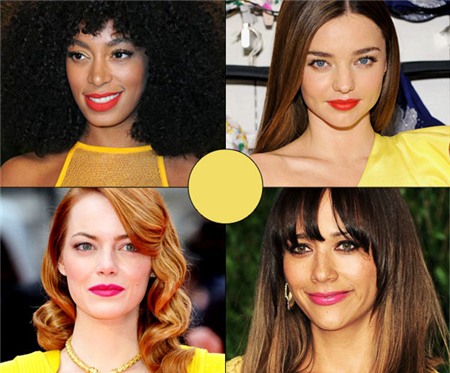 2. Đối với váy áo màu vàng Màu son phù hợp nhất: Đỏ hoặc hồng tím. Chúng ta có thể thấy sự kết hợp tuyệt vời giữa bộ đôi đỏ và vàng trong cuộc sống thường nhật, ví dụ như chiếc hamburger vàng ươm kẹp cà chua. Tuy nhiên, khi áp dụng son đỏ bạn cần lưu ý không diện trang phục màu vàng chói, thay vào đó tông vàng nhạt sẽ ăn ý với sắc đỏ hơn. Nếu có làn da sáng màu, chị em nên tô son hồng tím để ngoại hình thêm sáng và thu hút. |