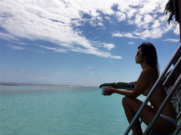 Trên trang cá nhân, Hà Anh tiếp tục khoe những tấm ảnh của vợ chồng cô trong chuyến nghỉ dưỡng ở 'hòn đảo thiên đường'. Đáng chú ý là khoảnh khắc siêu mẫu bán nude trước cảnh biển xanh mát tại Maldives. |