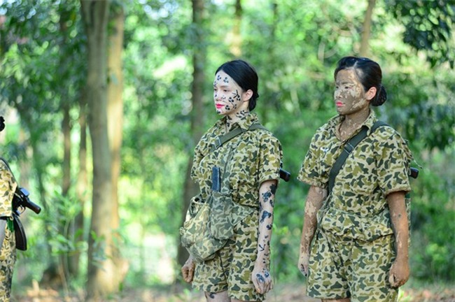 Cô cùng đồng đội lấm lem bùn đất nhưng sẵn sàng chiến đấu.