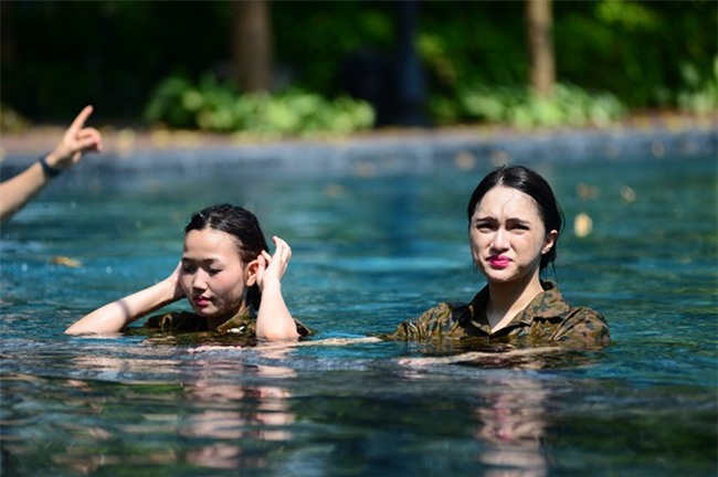 Nữ ca sĩ chắc chắn cũng gặp khó với những nhiệm vụ ở dưới nước.