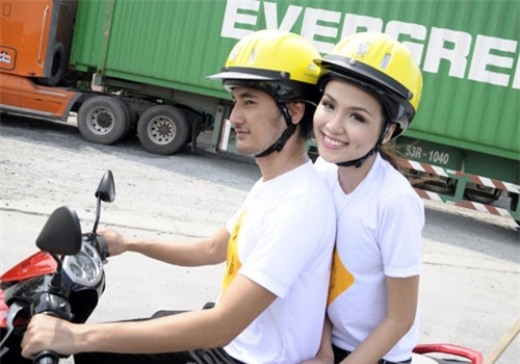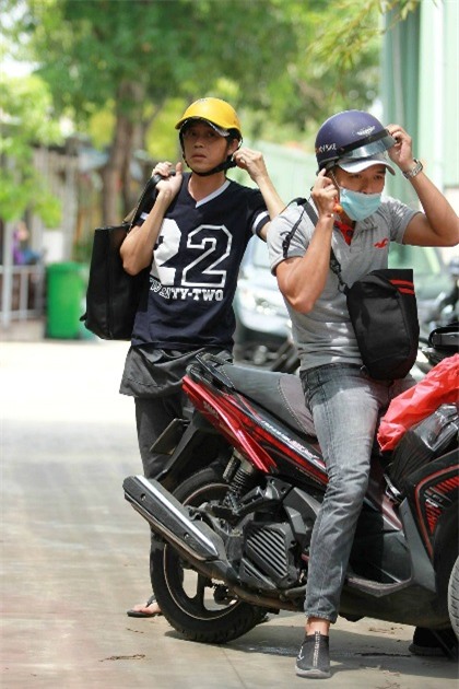 Diễm Hương tươi tắn ngồi sau xe Duy Băng.