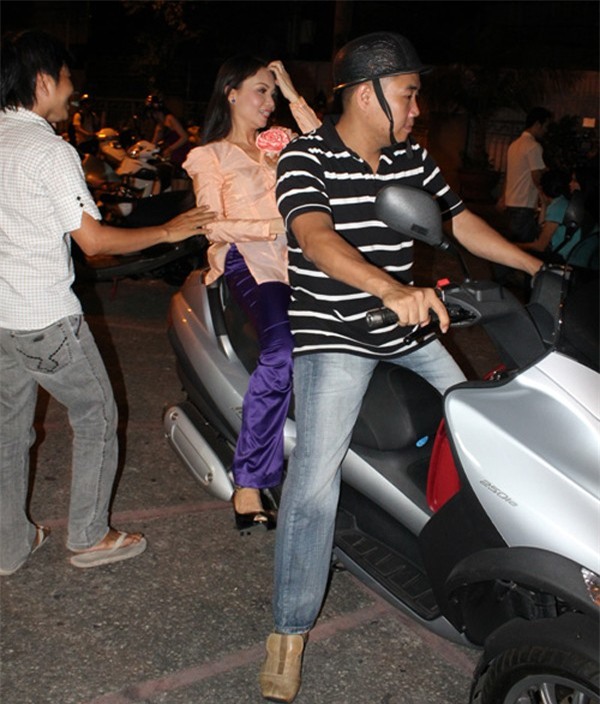 Sở hữu khối tài sản nhiều người mơ ước nhưng Cẩm Ly và ông xã vẫn thi thoảng di chuyển tới sự kiện bằng xe máy.