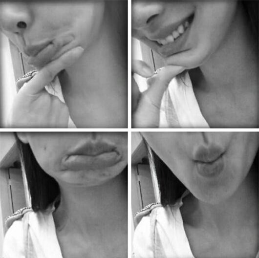 Về khoản tin đồn phẫu thuật thẩm mỹ, Angela Baby cũng không kém cạnh chồng. Để cho thấy mình không sửa cằm, nữ diễn viên đã đăng loạt ảnh selfie chụp cảnh cô chu môi, trề môi, nắn cằm.