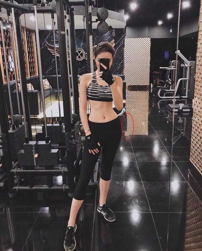 Hoa hậu Kỳ Duyên cũng vấp phải lỗi tương tự như các người đẹp khác khi chỉnh sửa ảnh tới mức làm méo cả cột ở phòng tập.