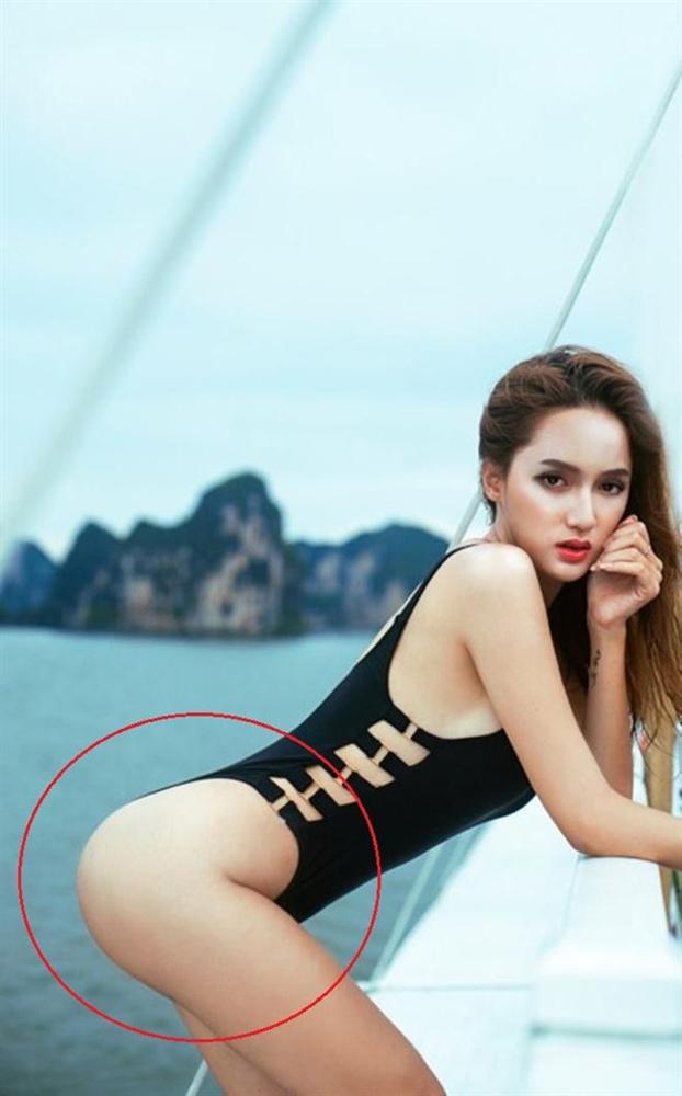 Người hâm mộ dễ thấy vòng 3 của Hương Giang Idol có vấn đề. Không căng tròn, đẫy đà như các bức ảnh khác, vòng 3 của Hoa hậu lại bị kéo dài, nhọn hoắt.