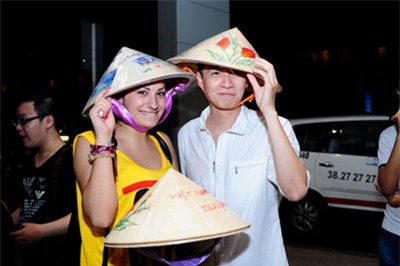 Ngô Kiến Huy không quên gửi tặng cho bạn nhảy của mình món quà kỷ niệm rất Việt Nam. |