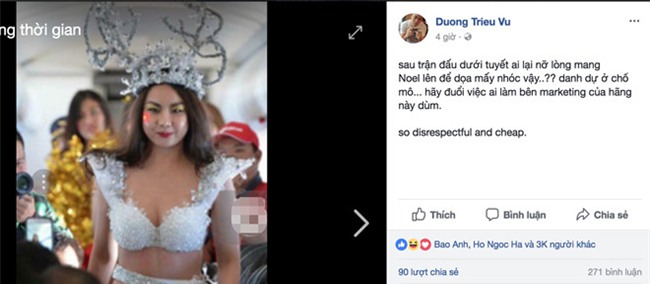 “Biến một sự kiện cần trang trọng lại trở thành rẻ tiền, doanh nghiệp cần gây chú ý là phải cho người mẫu khoe da thịt sao?”, độc giả Trần Dũng viết.