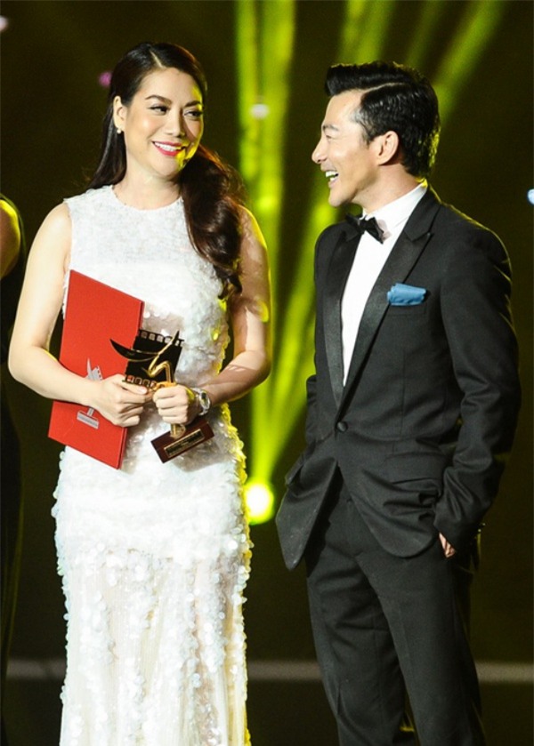 Trong lễ trao giải Cánh diều vàng 2015, Trương Ngọc Ánh và “người mới” Kim Lý quấn quýt nhau không rời dù Trần Bảo Sơn cũng có mặt tại sự kiện.