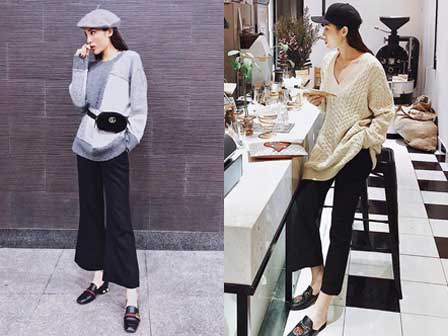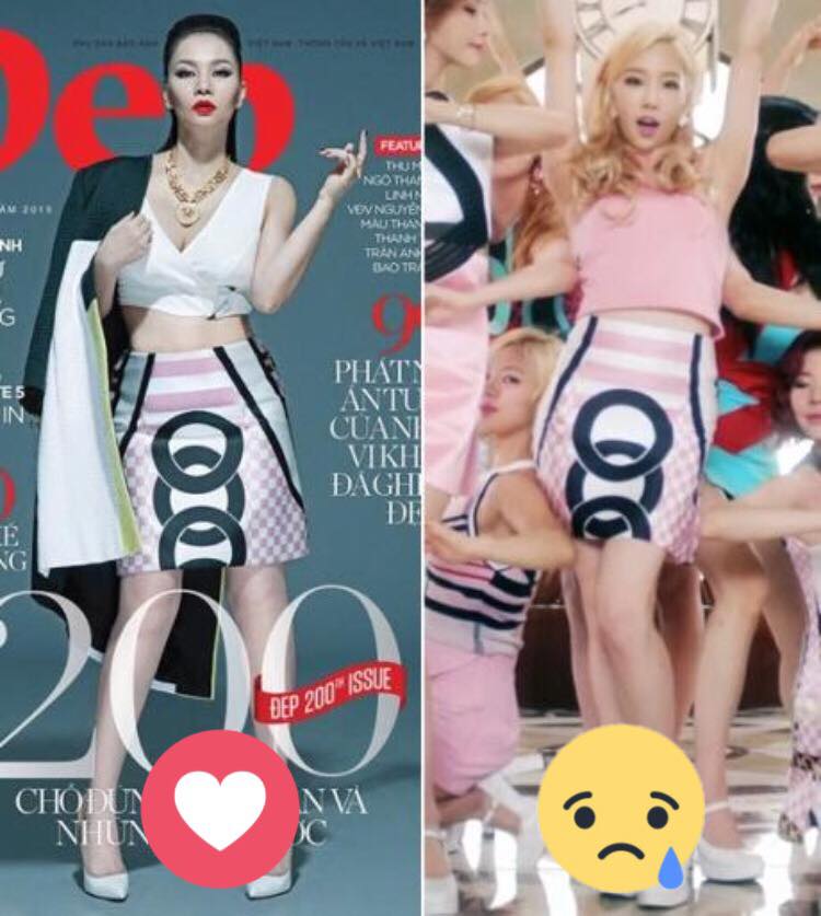 Cả cây hàng hiệu gồm áo sơ mi, chân váy của Hồ Ngọc Hà không khác bộ cánh của Tiffany SNSD. Tuy nhiên, mẹ Subeo khéo léo giúp bộ trang phục trở nên mới mẻ khi lăng xê mốt khăn turban cá tính, độc đáo và "hack chiều cao" với đôi guốc đinh tán cá tính.