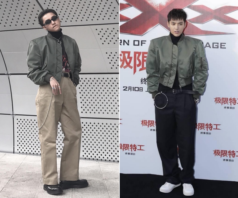 Bộ cánh "như thời của bố" từng gây xôn xao của Sơn Tùng M-TP hóa ra lại đụng hàng với Ngô Diệc Phàm ở bên kia biên giới. Bộ cánh này không có tính ứng dụng lắm vì hơi phá dáng nhưng do giọng ca "Chạy ngay đi" mặc đến tuần lễ trời trang nên lại thành hợp lý. Cựu thành viên nhóm nhạc EXO diện áo khoác to thế này đi ra mắt phim thì hơi vướng nhỉ?
