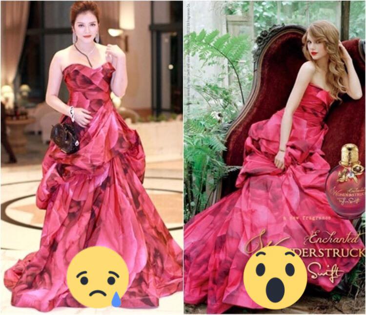 Lý Nhã Kỳ có lẽ hơi quá tuổi với tóc búi và đầm công chúa. Chiếc túi xách của cô cũng không thật sự phù hợp, trong khi Taylor Swift chụp ảnh theo concept quý tộc nên tổng thể váy và tóc lại rất "ăn rơ".
